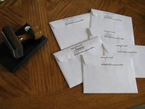 Dozens of licked envelopes and cursive-penned addresses later, most of our save-the-dates (There are still a few addresses we need to obtain.) are in the hands of the US Postal Service and on their way to people we love in Ohio, Indiana, Tennessee, Massachusetts, Maryland, Colorado, Virginia, Pennsylvania, Oklahoma, North Carolina and South Carolina – whew, that’s a lot of places!